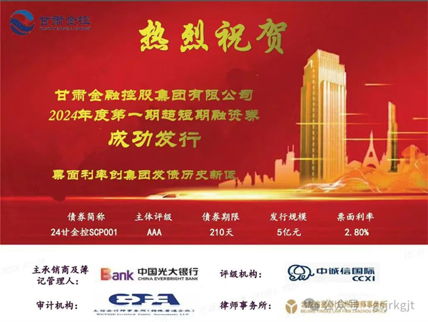 1月26日,天博买球(中国)官方网站 成功发行2024年度第一期超短期融资券,发行规模5亿元,债券期限210天,票面利率2.80%,再创发行债券融资利率新低。