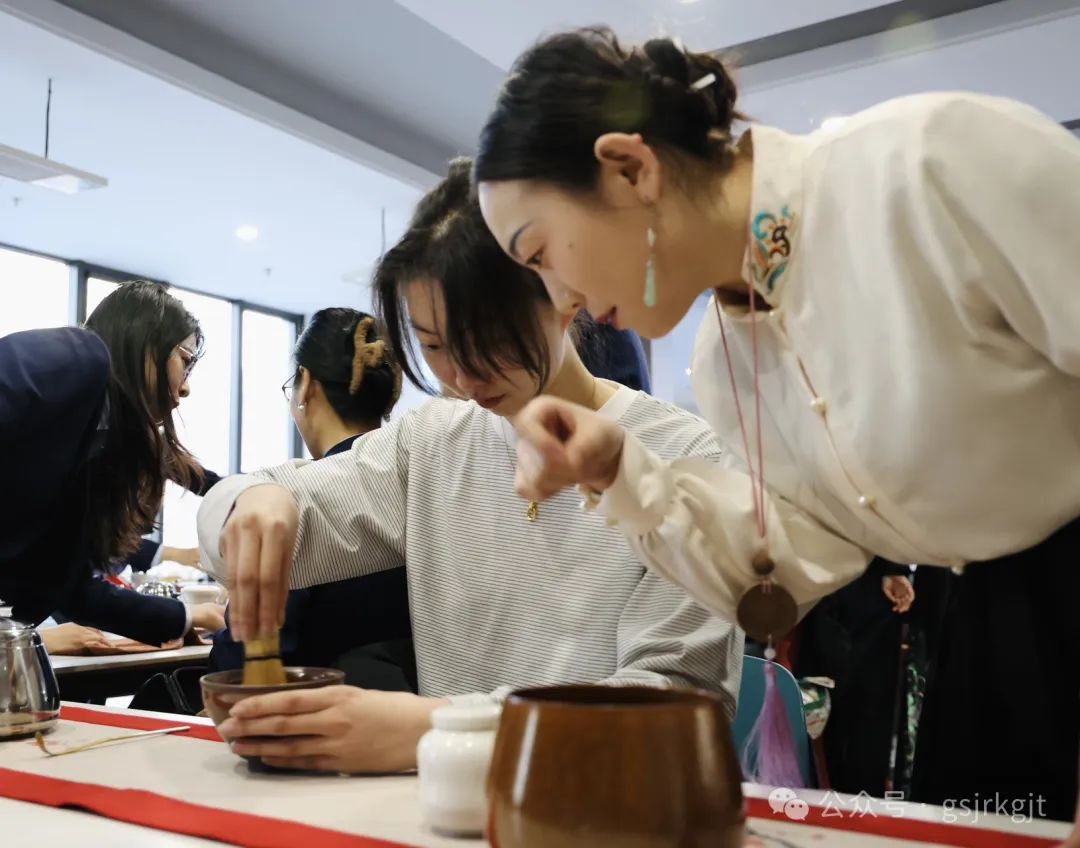 集团组织兰内100余名女职工齐聚集团2楼大厅,在国家级茶艺师的指导下开启茶文化之旅。活动现场,茶艺师以《茶经》典故为引,铺展开一片东方树叶穿越千年的文化长卷。从唐宋煎茶、明清瀹饮的流变,到绿茶清逸、红茶醇厚的风骨;从茶马古道的历史回响,到“和敬清寂”的禅意哲思,女职工们循着茶香触摸中华文明的脉络。随着古琴声起,茶艺师手执茶筅,在茶盏中匀速击拂,点茶的雪沫渐浮盏面;转而捧起三才盖碗,以太极回旋手法倾注茶汤,看银针白毫在杯中云卷云舒。通过沉浸式体验教学,大家认真练习“温具、置茶、冲泡、分茶”等泡茶顺序和手法,丝毫不敢懈怠,100余套青瓷茶具泠泠作响,女职工们或凝神观摩茶汤色泽,或结对切磋注水力度,氤氲茶烟中流淌着对传统文化艺术的敬仰。