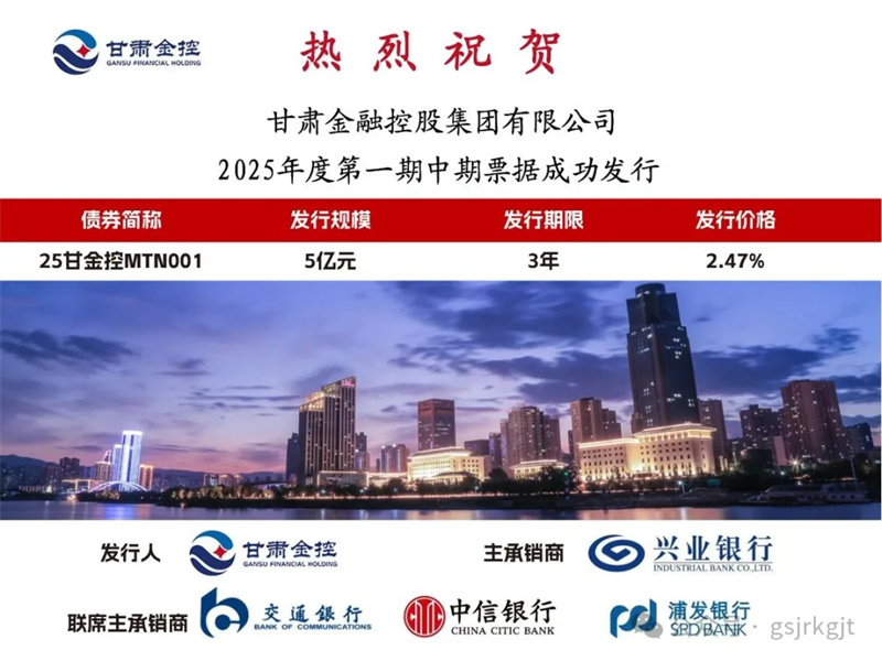 2025年6月10日,天博买球(中国)官方网站 成功发行2025年度第一期中期票据“25甘金控MTN001”,规模5亿元,期限3年,票面利率2.47%,全场倍数2.72倍,体现出市场对集团稳健经营和良好偿债能力的信心。