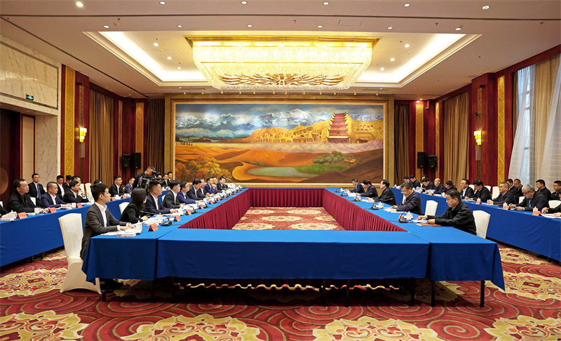 任振鹤介绍了甘肃基本省情和支持企业发展的政策措施。他说,甘肃蕴藏着巨大的投资机会和潜力,希望各位企业家将企业战略布局、项目投资、成长发展同甘肃的优势条件、资源能源、潜力前景相结合,抢占市场先机,创造更大价值,实现双赢发展。我们将用心用情用力做好服务保障,让企业在甘放心投资、专心创业、安心经营、舒心发展。