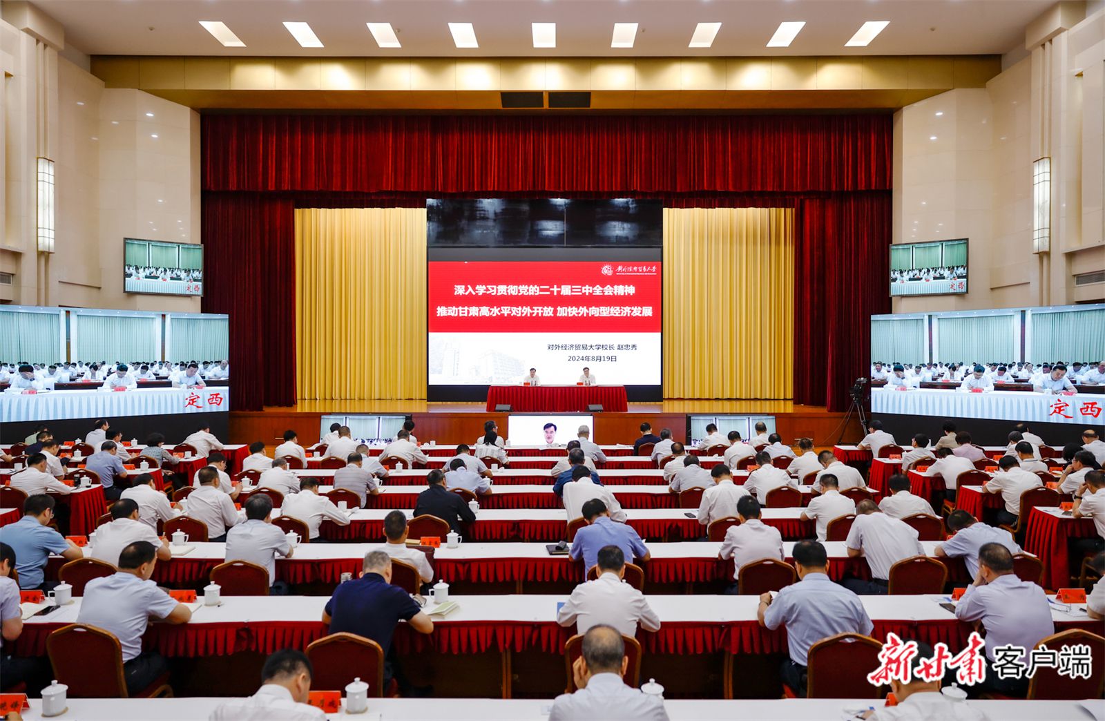 省委理论学习中心组专题学习(扩大)会议8月19日在兰州举行。省委书记、省人大常委会主任胡昌升主持并讲话。他强调,要认真学习贯彻党的二十届三中全会精神,深入学习贯彻习近平总书记在新时代推动西部大开发座谈会上的重要讲话精神和关于对外开放的重要论述,深度融入高质量共建“一带一路”,着力提升全省开放型经济发展水平。