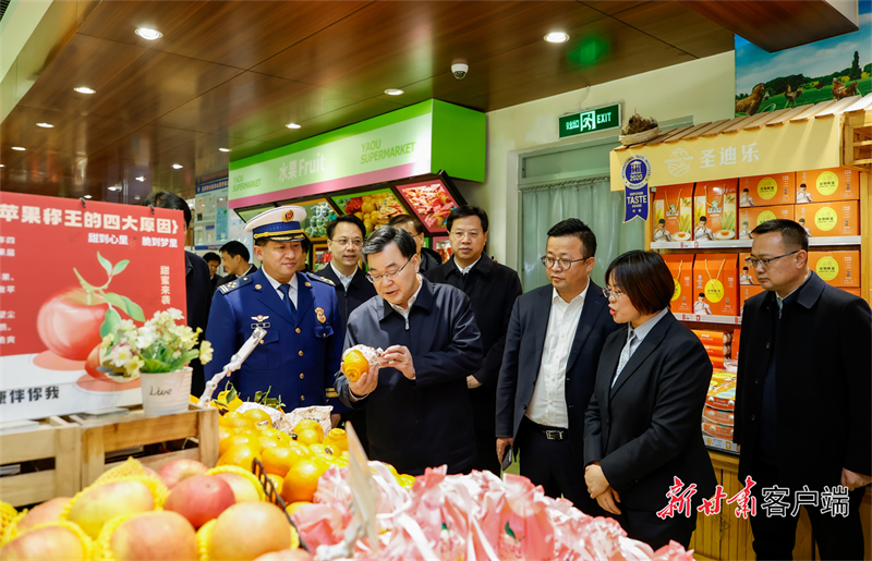 12月30日,元旦假期来临之际,省委书记、省人大常委会主任胡昌升在兰州调研检查安全生产、民生商品保供稳价和节日消费等工作,走访慰问全国先进工作者、老党员和基层一线工作人员,向全省人民致以节日祝福。(记者孟捷)