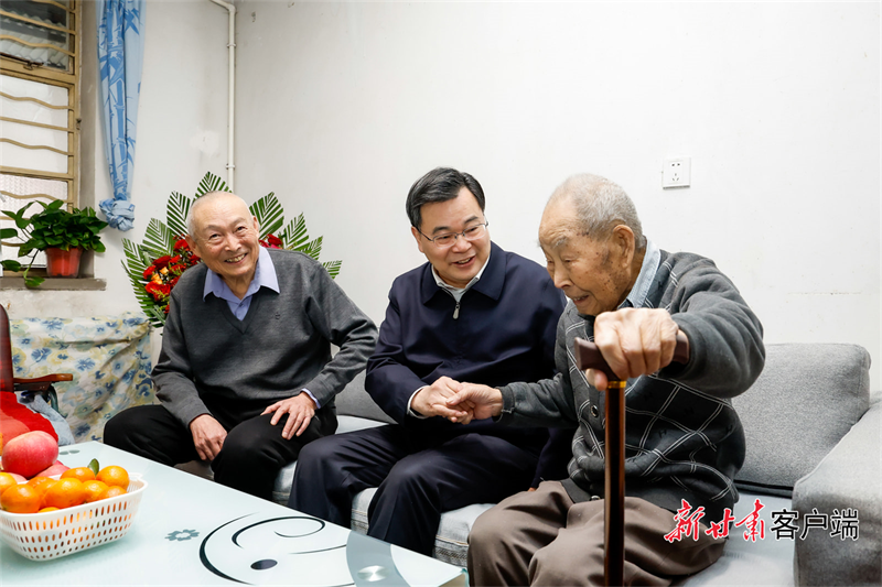 在走访慰问全国先进工作者、退休工人高存花和老党员朱建升时,胡昌升关切询问他们的身体状况、日常生活等情况,感谢他们作出的贡献,祝福他们健康长寿。他强调,各级各有关部门要悉心照顾老党员、老干部和先进工作者,满腔热情为他们办实事、做好事、解难事,让他们安享幸福晚年。要进一步营造崇尚先进、学习先进、争当先进的浓厚氛围,教育引导广大党员干部不忘初心、顽强拼搏,为奋力谱写中国式现代化甘肃篇章作出新贡献。