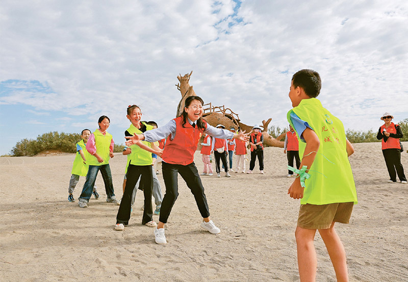 做好思想政治工作,需要增强服务意识,解决群众实际困难。近年来,甘肃实施“结对帮扶·爱心甘肃”工程,组织党员、干部与孤儿、困难重度残疾人、特殊困难群众结对认亲,积极开展关爱帮扶工作。图为2024年8月6日,酒泉市金塔县“爱心妈妈”正在与结对儿童一起做游戏。(通讯员曹红祖)