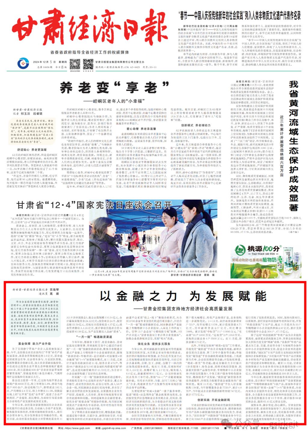 将在省委、省政府坚强领导下,充分发挥金融企业独特优势,聚焦主责主业,优化服务举措,在稳企业上出实招,在增动能上谋实事,为服务甘肃社会经济高质量发展提供多元化金融支持。(苏海琴 高婧)