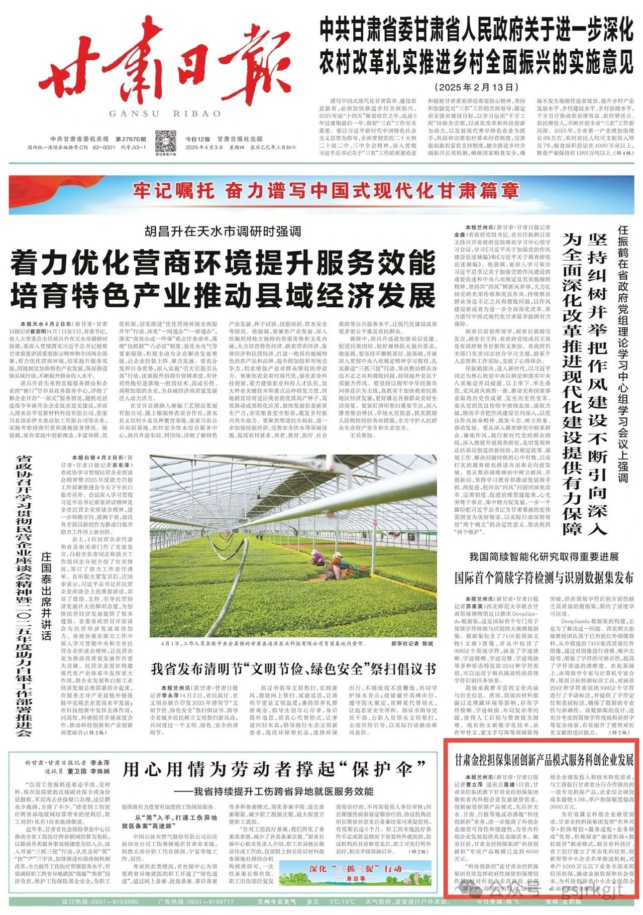 旗下甘肃金控担保集团,聚焦省内科创企业发展融资需求,创新融资担保产品模式,先后在天水、甘南、白银等地成功落地“科技创新担”业务,进一步提高了科创企业融资可得性和便捷性,为省内科创企业发展提供充足金融活水。截至目前,“科技创新担”专项产品规模已达到8000万元。