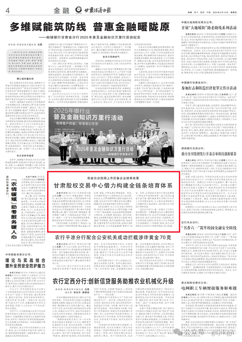媒体关注 | 我省出台挂牌上市后备企业培育政策 甘肃股权交易中心借力构建全链条培育体系
