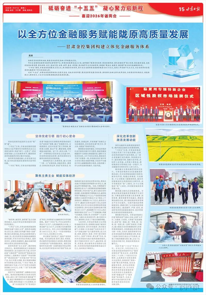 将始终牢记“服务实体经济”根本宗旨,全面贯彻党的二十大和二十届历次全会精神,认真落实中央和省委相关会议要求,持续深化“财政+金融”模式系列措施,优化金融服务体系,协同运用财政资源和金融工具,为全省实体经济高质量发展提供更为高效的综合金融服务,实现“稳健运营”与“服务效能”协同提升,为奋力谱写中国式现代化甘肃篇章提供更加坚实的金融支撑。(高婧)