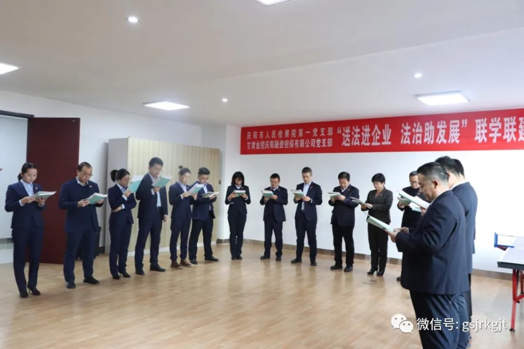近日,庆阳市人民检察院联合甘肃金控庆阳担保公司开展联学联建活动,创新党建引领新形式,丰富党建工作新内容,增强企业依法经营新理念,全面推动法治管理建设纵深发展。