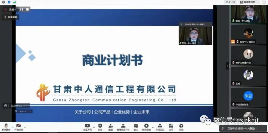 近日,甘肃股权交易中心首次采取云路演的方式举办“微路演(专精特新专场)”,对3家“专精特新”企业进行项目融资推介,省内银行、证券公司、投资机构等相关代表,共计40余人参加本次云路演项目融资推介会。