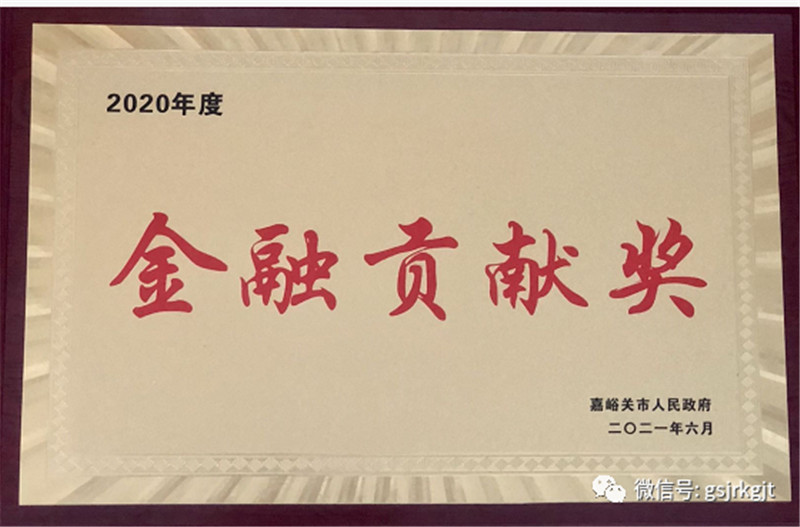 8月11日,金控嘉峪关担保荣获嘉峪关市政府全市金融助力高质量发展暨政金企担融资对接会上授予的“2020年度金融贡献奖”,以表彰金控嘉峪关担保在2020年度服务中小微企业等方面取得的突出贡献。