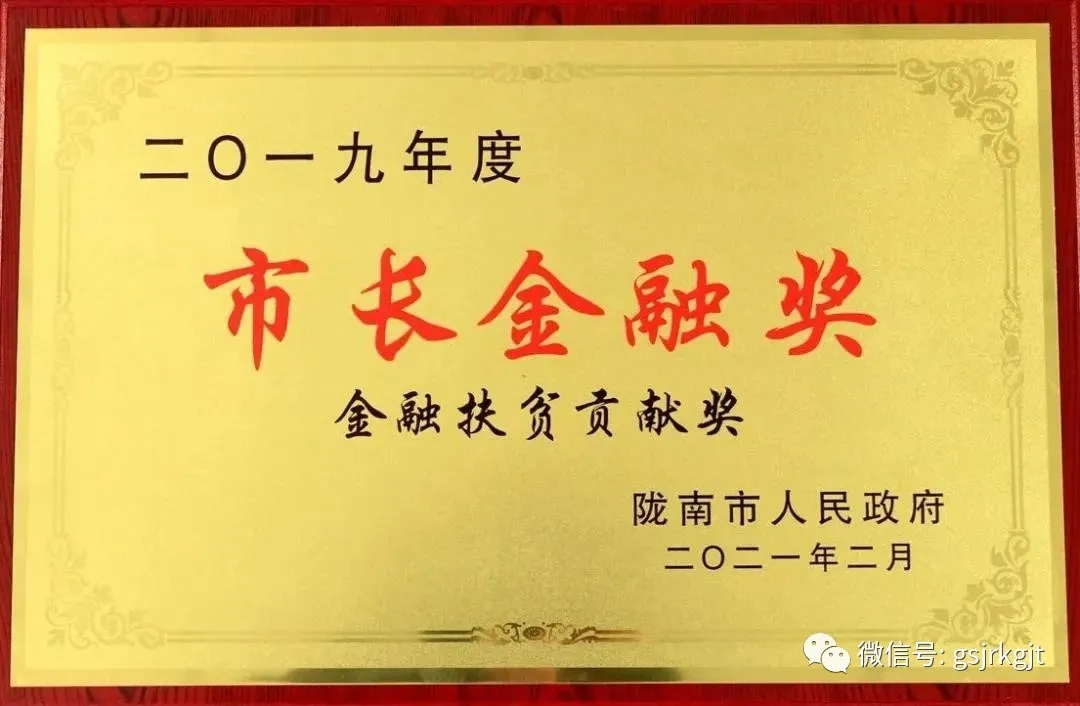 薛小勇授予金控陇南担保“2019年度市长金融奖”