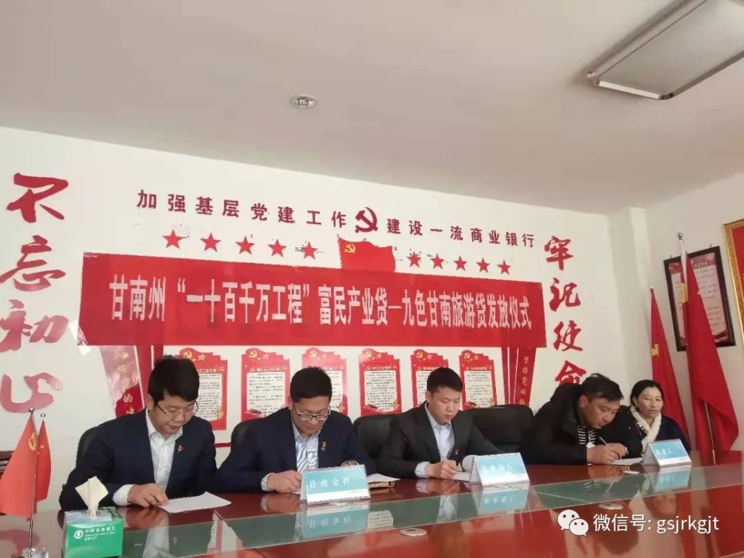 为积极响应地方政府决策部署,全面推动甘南州富民产业贷款工程稳步发展,甘肃金控甘南担保公司积极衔接中国农业银行甘南州分行,共同推进“一十百千万工程”富民产业贷-九色甘南旅游贷项目落地见效。